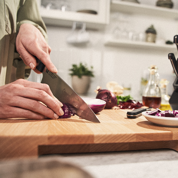 Svaki alat za rezanje ima svoje mjesto u samooštrećem bloku za noževe. S lako dostupnim kutom i sigurno skrivenom oštricom, to je idealno mjesto za vaše omiljene noževe. Na taj način ih možete pravilno pohraniti i dulje uživati u njima.